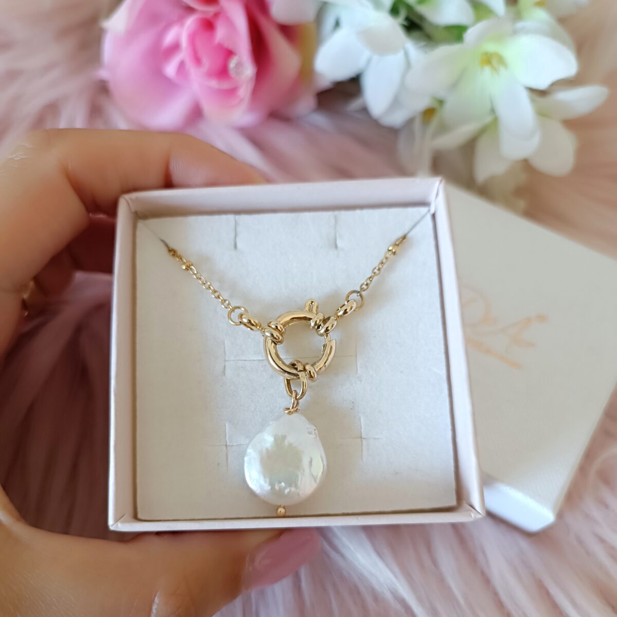 Collana con perla schiacciata
