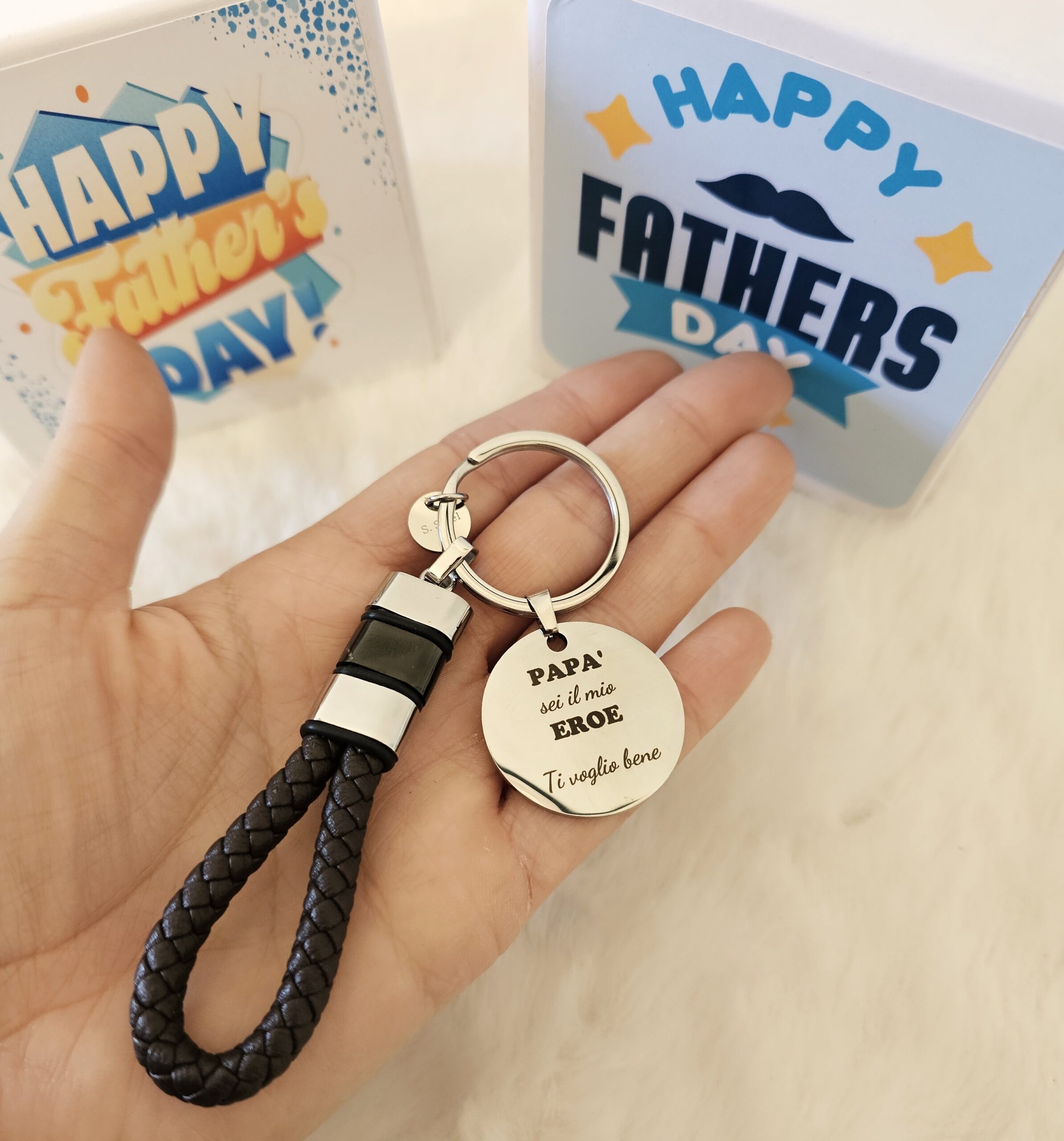 Portachiavi con dedica in acciaio inox personalizzabile, made in Italy.